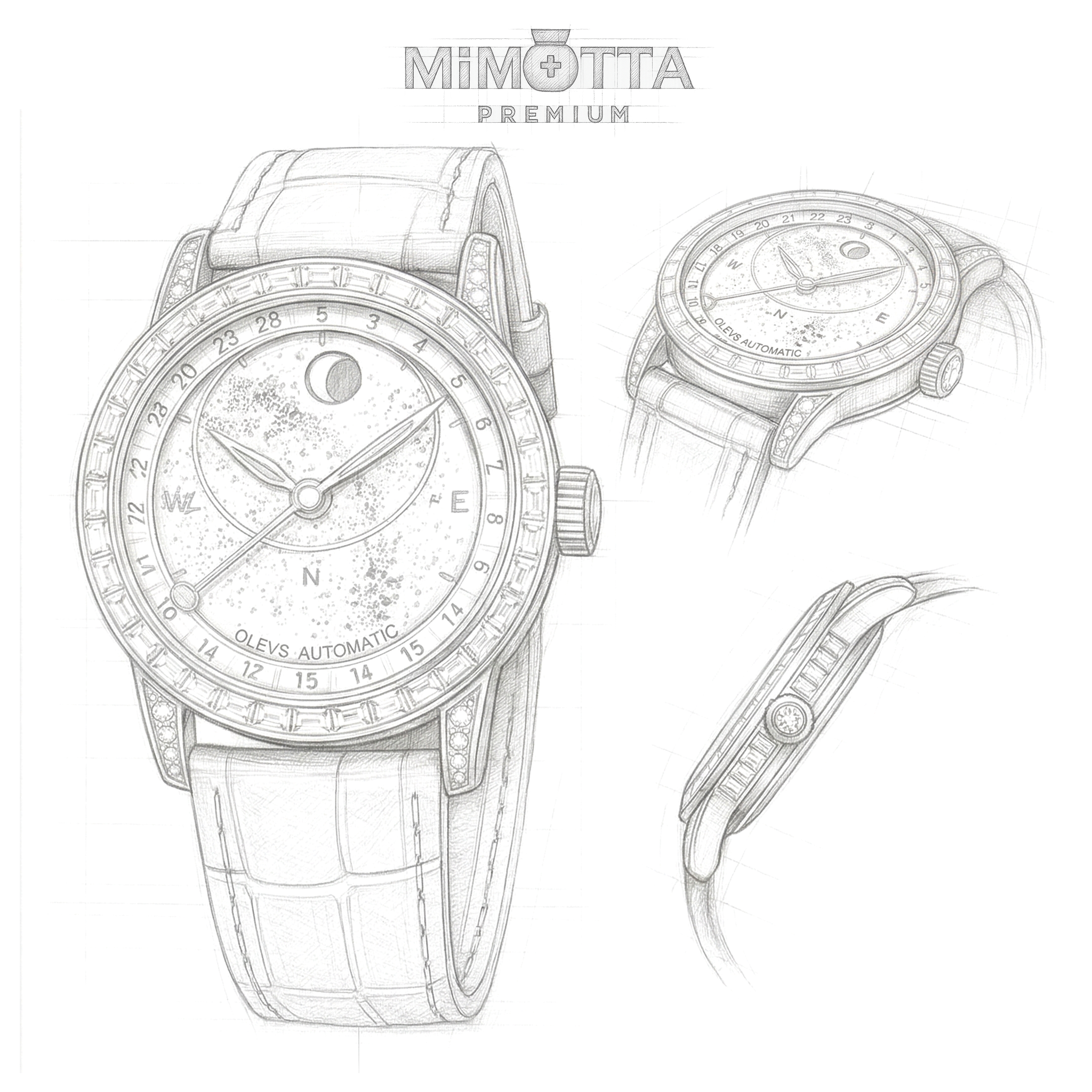 - Celestial Starry Night Dial: A breathtaking deep blue dial that emulates a glittering star-filled sky, complete with a poetic moon phase indicator.