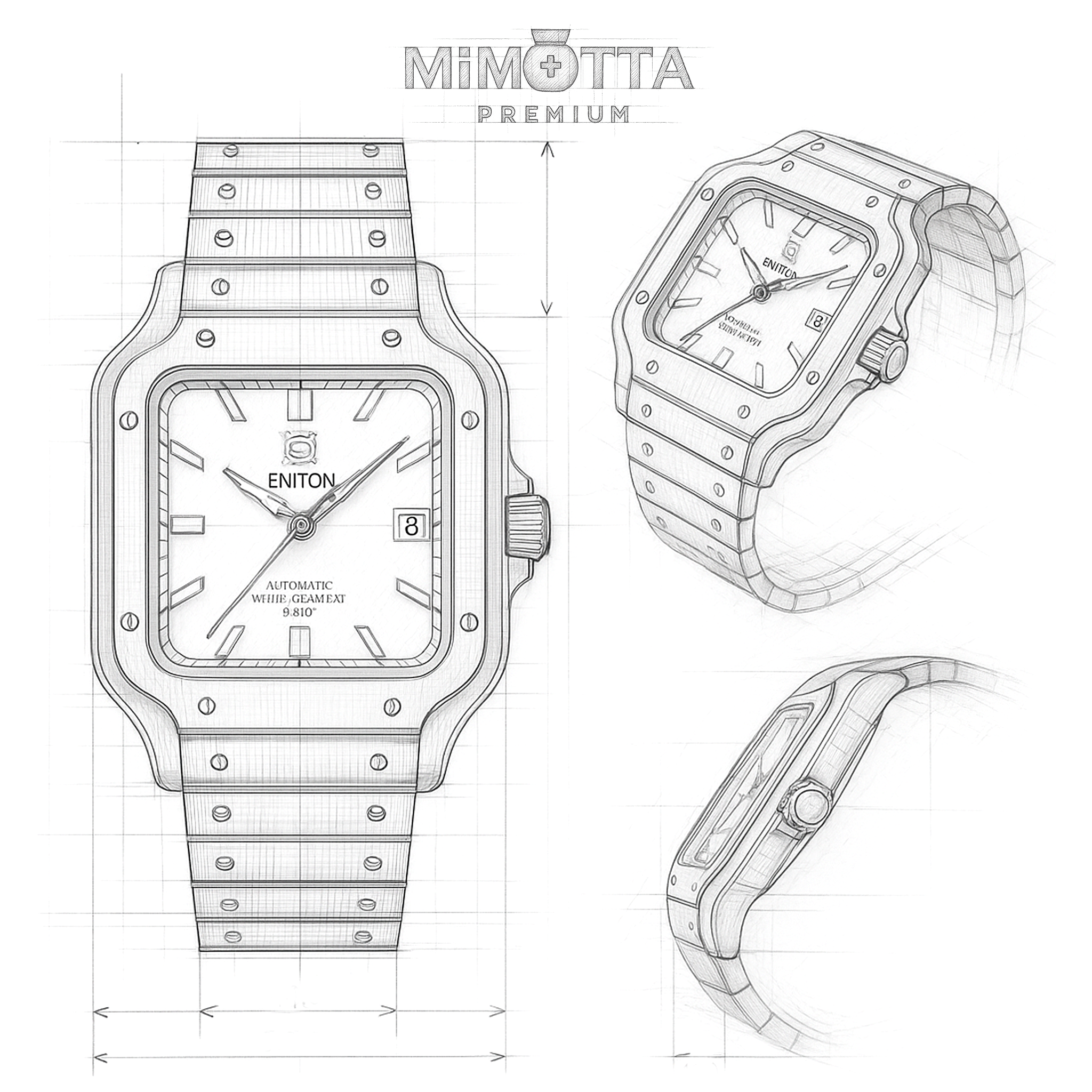 The MiMOTTA™ Carre is a tribute to timeless geometry and industrial elegance. Distinguishing itself with a bold square case accented by visible bezel screws, it offers a refined aesthetic that bridges the gap between vintage aviation style and modern luxury. The crisp white dial, illuminated by striking blue hands and polished silver indices, creates a look of understated power, perfect for the gentleman who values precision and distinction.