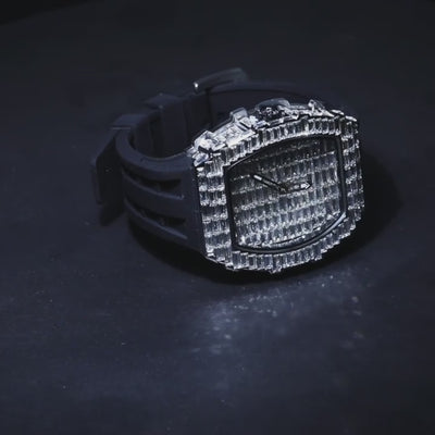 - Ultimate Brilliance: The entire case and dial are meticulously handset with baguette-cut simulated diamonds for an unmatched "iced-out" look.