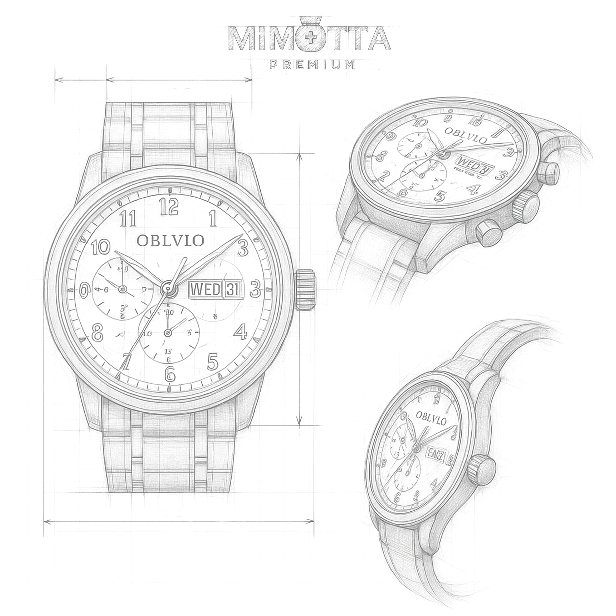 The MiMOTTA™ Nobilis is the epitome of classical sophistication and horological complexity. Encased in a stunning rose gold-tone stainless steel body, this timepiece features a refined white dial adorned with elegant Arabic numerals and intricate sub-dials displaying calendar and zodiac functions. Protected by a scratch-resistant sapphire crystal and paired with a rich brown leather strap, the Nobilis is designed for the gentleman who values tradition, precision, and an air of nobility.